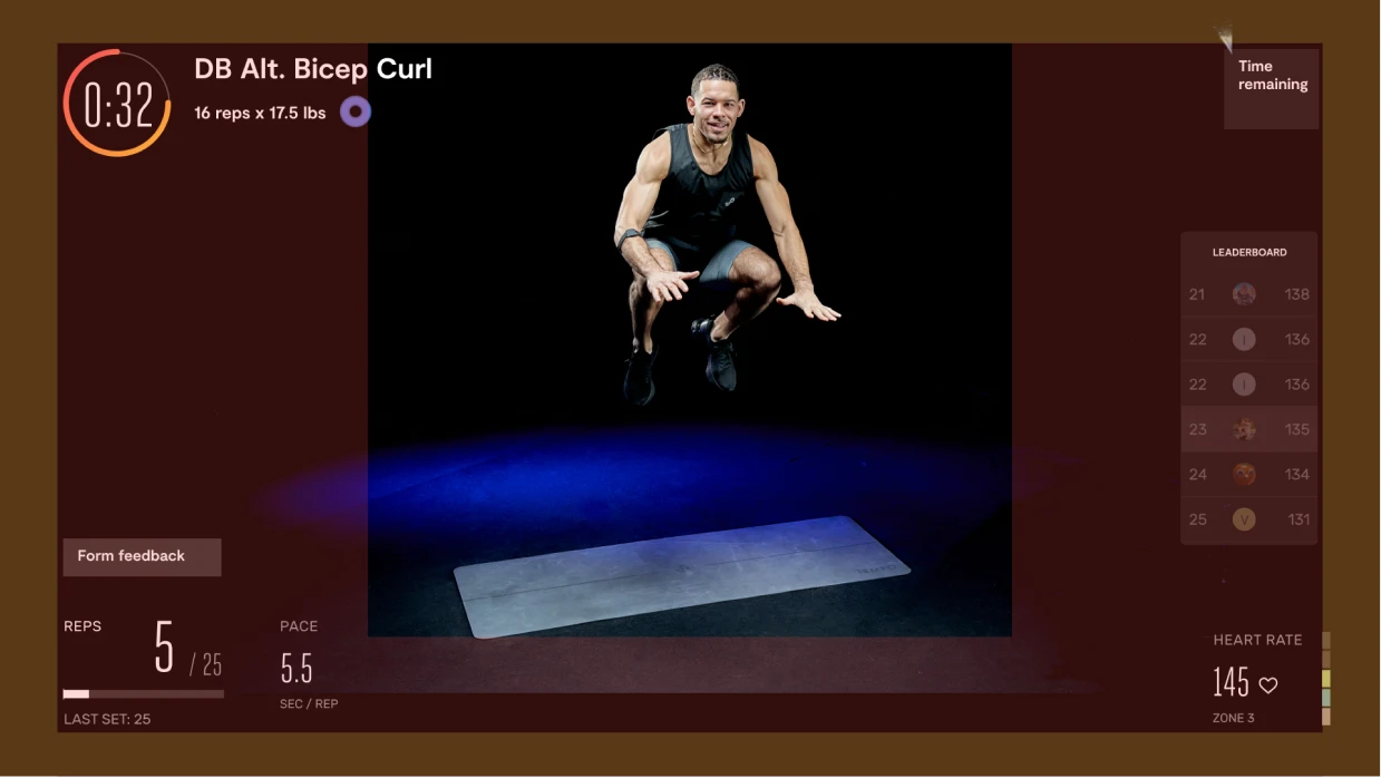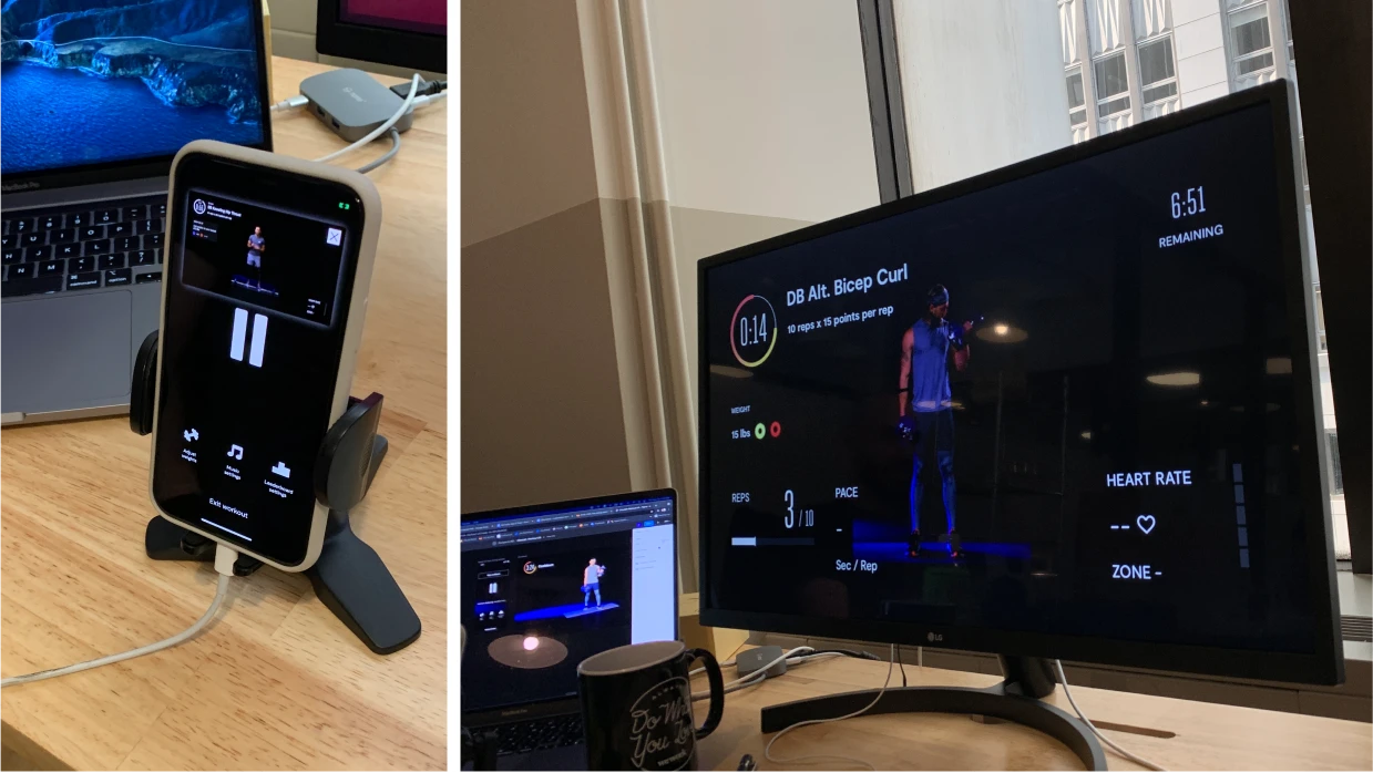 Moving on to the workout experience, we knew that the bulk of the work would be proving that our tech can work in this new format: a landscape TV screen, and leveraging a camera that is separated from the display, with much more variability.