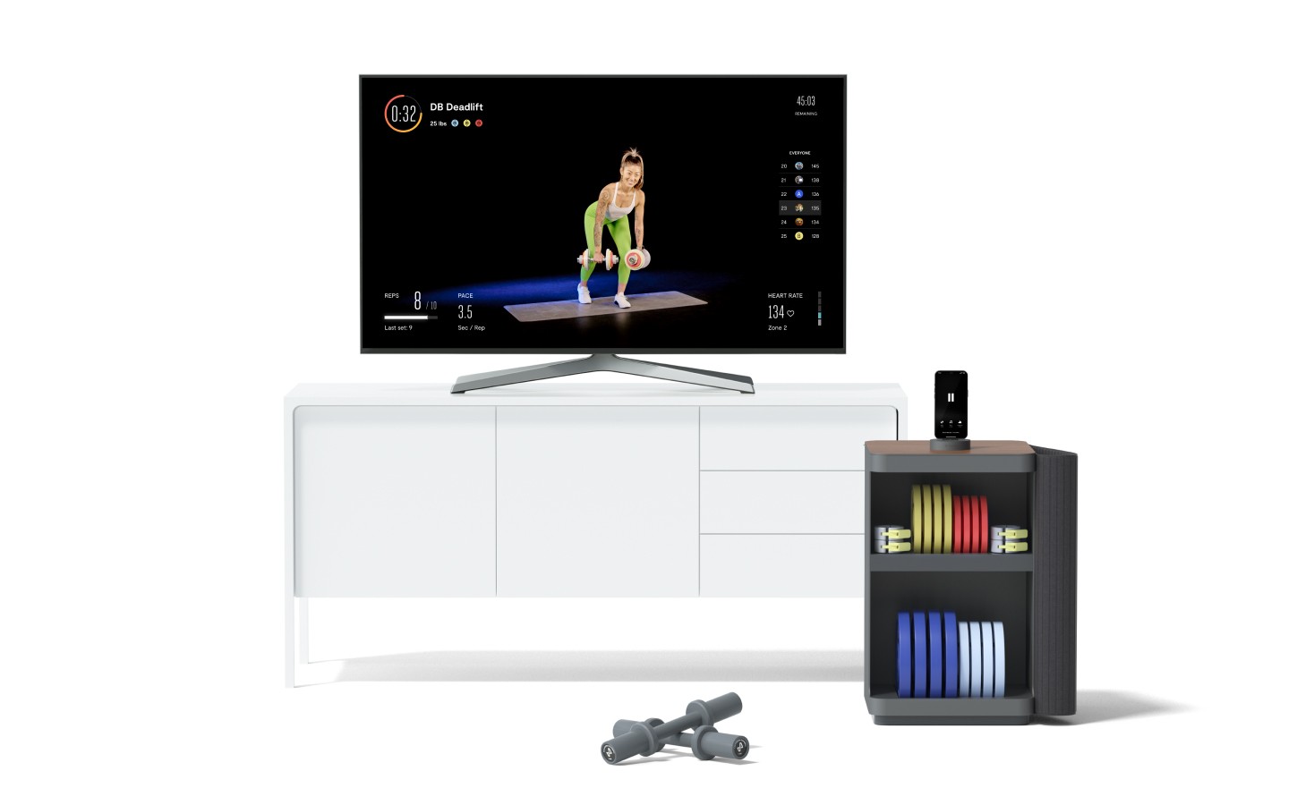 With the Tempo Move, users can purchase the weight cabinet and Tempo Core, then with their iPhones, they can connect to the core, which connects to a TV, allowing users to turn hardware they already have into a home gym.